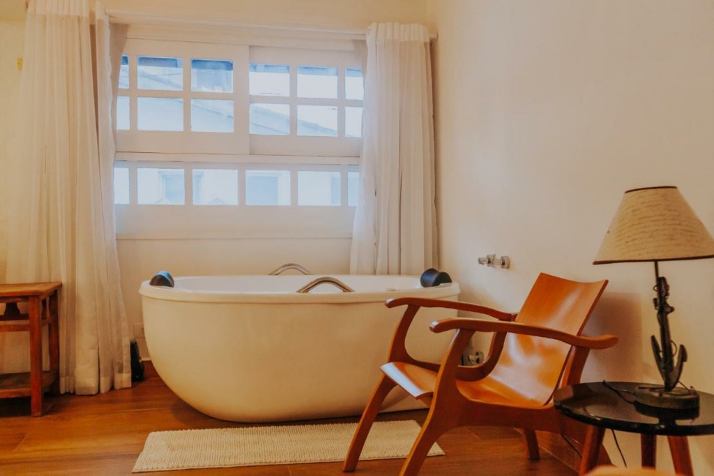 - Quartos confortáveis com decoração elegante, banheiras privativas e produtos de banho L’Occitane