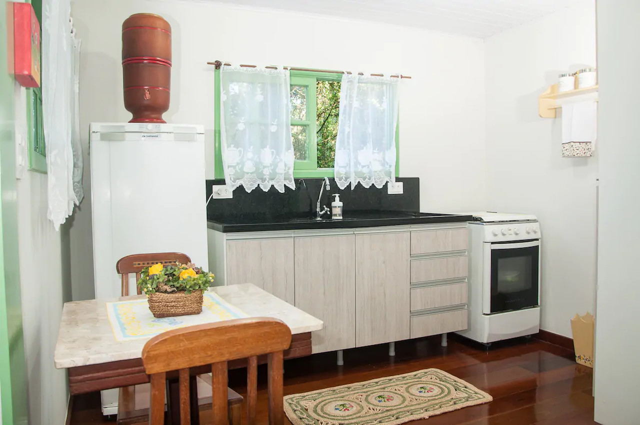 Que tal ficar em um chalé romântico, compacto, charmoso e praticamente na árvore?! O Estúdio Floresta das Evas é desses airbnbs para vivenciar um momento único. Além disso, tem lareira, espaço para fogueira no deck externo, bem como uma banheira de hidromassagem na varanda. É, ou não é, romântico?! É um chalé em madeira moderninho, com internet e cozinha completa.