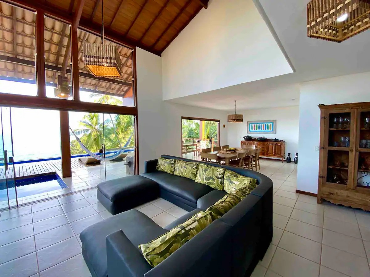 Uma das melhores hospedagens na Bahia pelo Airbnb, essa Casa Beira Mar fica no condomínio Residence Pé na Areia, Arraial d’ajuda.