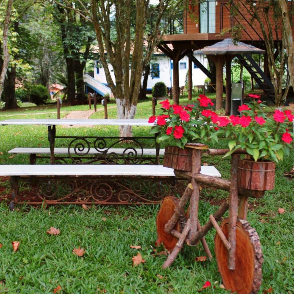 O café da manhã é mineiro, com pão de queijo artesanal e bolo fresco. Tem mini-cozinha compacta, ideal para quem gosta de cozinhar. À noite, há fogueira com marshmallows, além de quadra de beach tennis e piscina com vista. A hospedagem é pet friendly, aceita cães de pequeno porte. Há salão de jogos e delivery de pizzaria local.