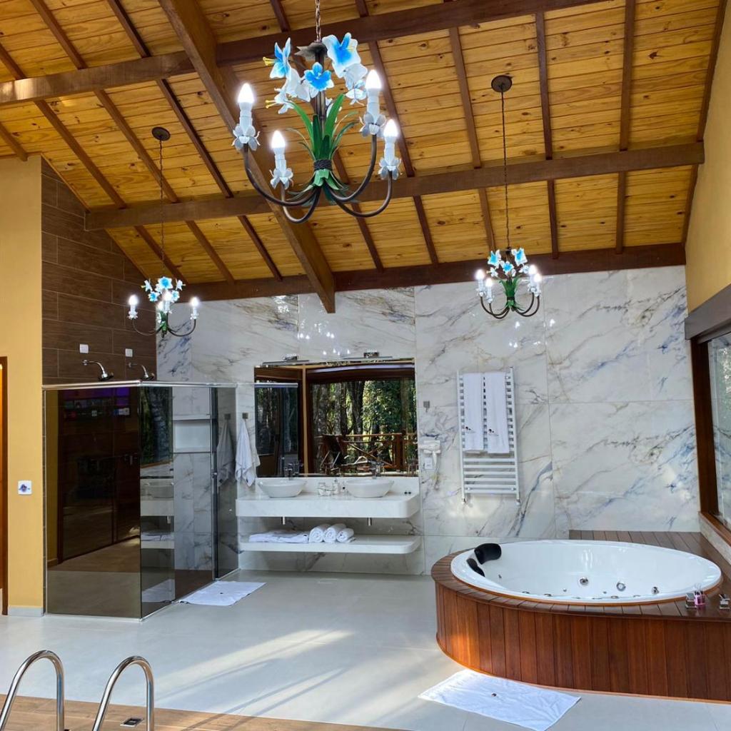 Se você busca isolamento com conforto e tecnologia, os Chalés Recanto das Montanhas são ótima escolha. São apenas três chalés em meio à mata nativa, com piso aquecido e hidromassagem de cobre com vista para copa das árvores.