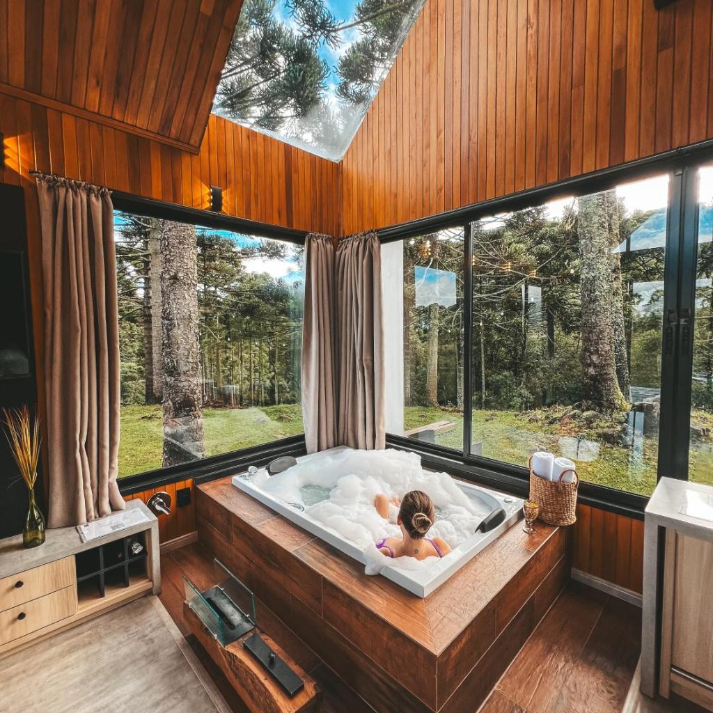 - Banheira de hidromassagem privativa na cabana
