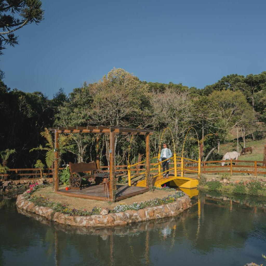 Morada Reino Encantado entrega uma experiência única em São Joaquim. Você chega e encontra chalés com estilo “Barn House” e decoração charmosa. Há banheira de hidromassagem, cozinha equipada e lareira externa.